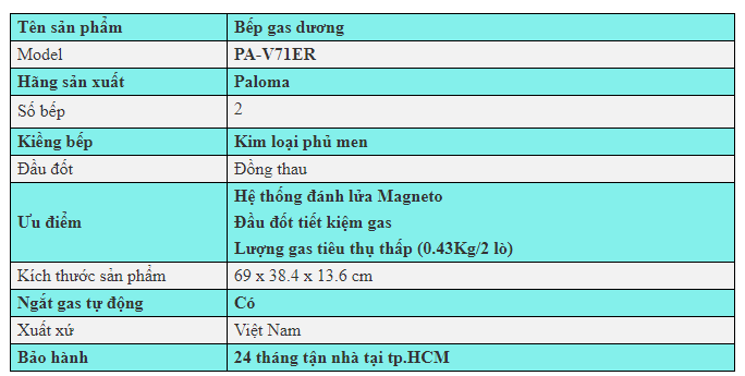 Bếp gas dương Paloma PA-V71EV được thiết kế với công nghệ Nhật Bản, tuân thủ mọi tiêu chuẩn quản lý chất lượng công nghiệp Nhật Bản (JIS) là 1 sự lựa chọn hoàn hảo cho không gian bếp của bạn. Bếp được thiết kế với màu đỏ bọc đô, sang trọng tô điểm cho không gian bếp của bạn.