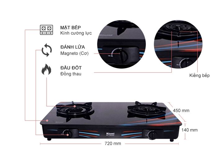 Bếp gas Rinnai RV-715SLIM(GL-SC) có hệ thống đánh lửa Mangeto nhanh, an toàn, tránh cháy nổ. Có đầu hâm giúp tiết kiệm gas khi ninh, hầm và không lo cháy khét.