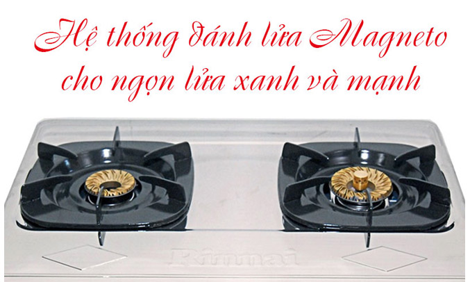 Bếp gas Rinnai RV-365(SW)N sử dụng hệ thống đánh lửa Magneto giúp đánh lửa nhanh, tạo ngọn lửa xanh và đều, dễ sử dụng và an toàn cho người dùng khi sử dụng.