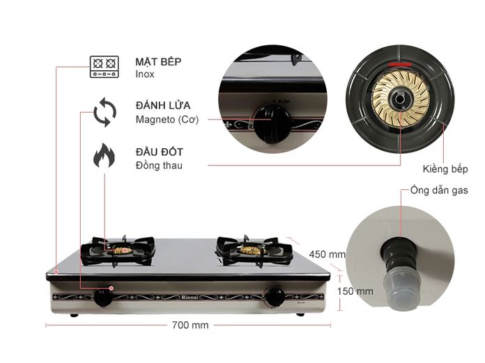 Bếp gas Rinnai RV-375(SW)N đầu đốt lửa bằng đồng.