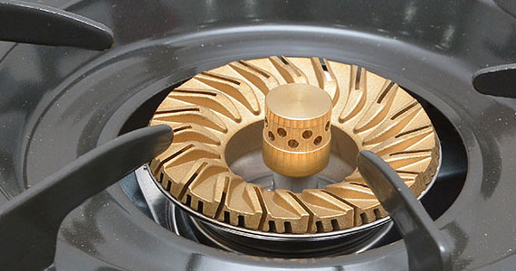 Bếp gas Rinnai RV-375(SW)N thiết kế đầu đốt lửa bằng đồng, chịu nhiệt cao, không bị biến dạng ở nhiệt độ cao. Bên cạnh, đầu đốt tạo vòng lửa xoắn, giúp lửa tập trung vào trung tâm đầu đốt, làm thức ăn nhanh chín.