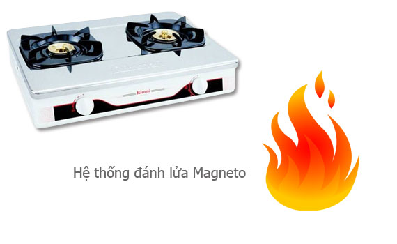 Bếp gas được trang bị hệ thống đánh lửa Magneto có độ bền cao, bật lửa nhạy và nhanh chóng người dùng chỉ cần bật nút một lần là có thể mở lửa lên để nấu ăn rất tiện lợi, bộ đánh lửa hiện đại đảm bảo an toàn cho người dùng khi sử dụng.