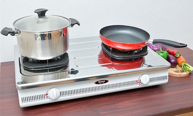 Bếp gas Rinnai là dạng bếp đôi, với hai lò nấu lớn nhỏ tiện dụng, giúp tiết kiệm thời gian nấu cho người nội trợ.