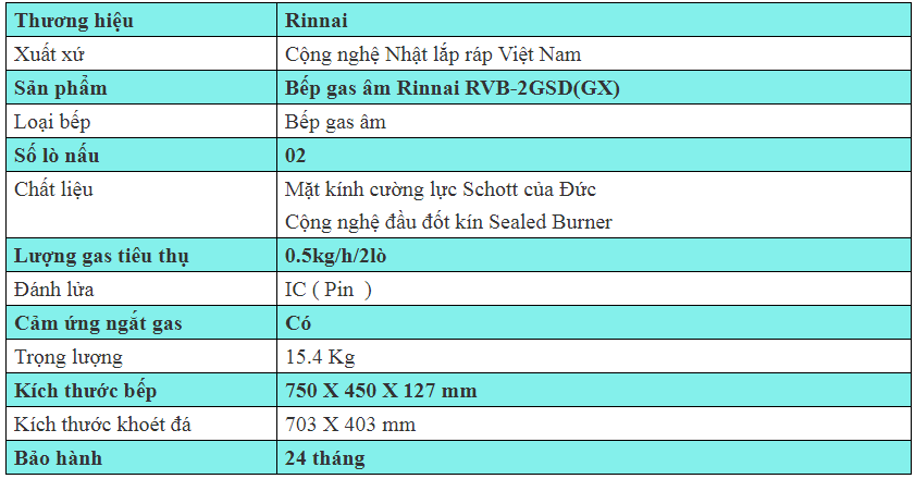 Kiềng bếp âm Rinnai RVB-2GSD(GX) thiết kế mẫu mã sang trọng và chất lượng cao cấp, mang đến cho gian bếp nhà bạn những tính năng tối ưu nhất hiện nay giúp các bà nội trợ có thêm nhiều thời gian để thư giản trong việc bếp núc gia đình