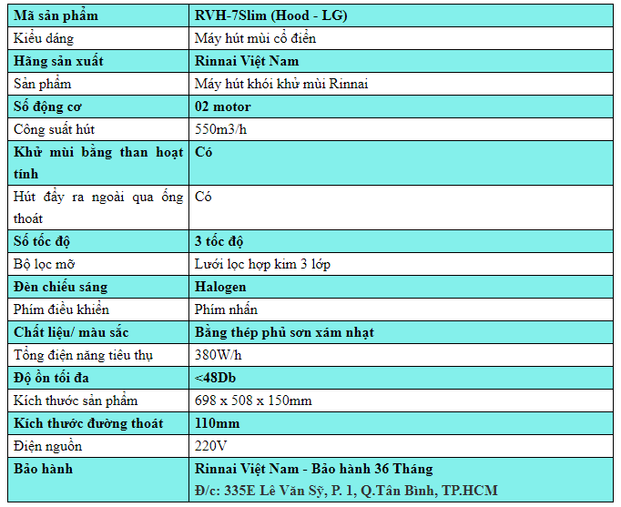 Máy hút mui Rinnai RVH-7Slim (Hood - LG) sẽ giúp bạn loại bỏ hoàn toàn mùi dầu mỡ, khí gas, mang lại bầu không khí trong lành cho phòng bếp gia đình bạn.