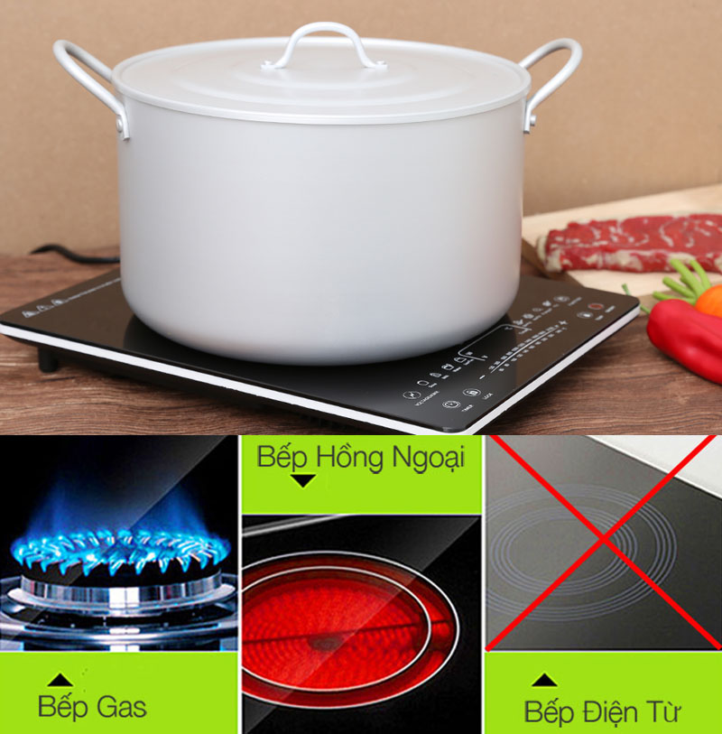 Sử dụng được trên bếp hồng ngoại, bếp gas, không sử dụng được trên bếp từ