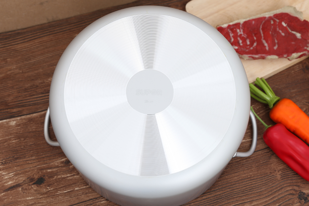 Đường kính 28 cm tiện luộc được gà khoảng 1.5 - 1.8 kg. Nồi Supor sản xuất tại Việt Nam, thiết kế đơn giản, tiện sử dụng nấu ăn hằng ngày