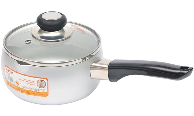 Nồi sữa Supor PS14 màu trắng làm từ hợp kim nhôm quốc tế 3003 cho độ bền cao, chống mài mòn, an tâm dùng nồi mà không lo nhanh chóng bị hư hại do tác động từ lửa hoặc từ nhiệt.